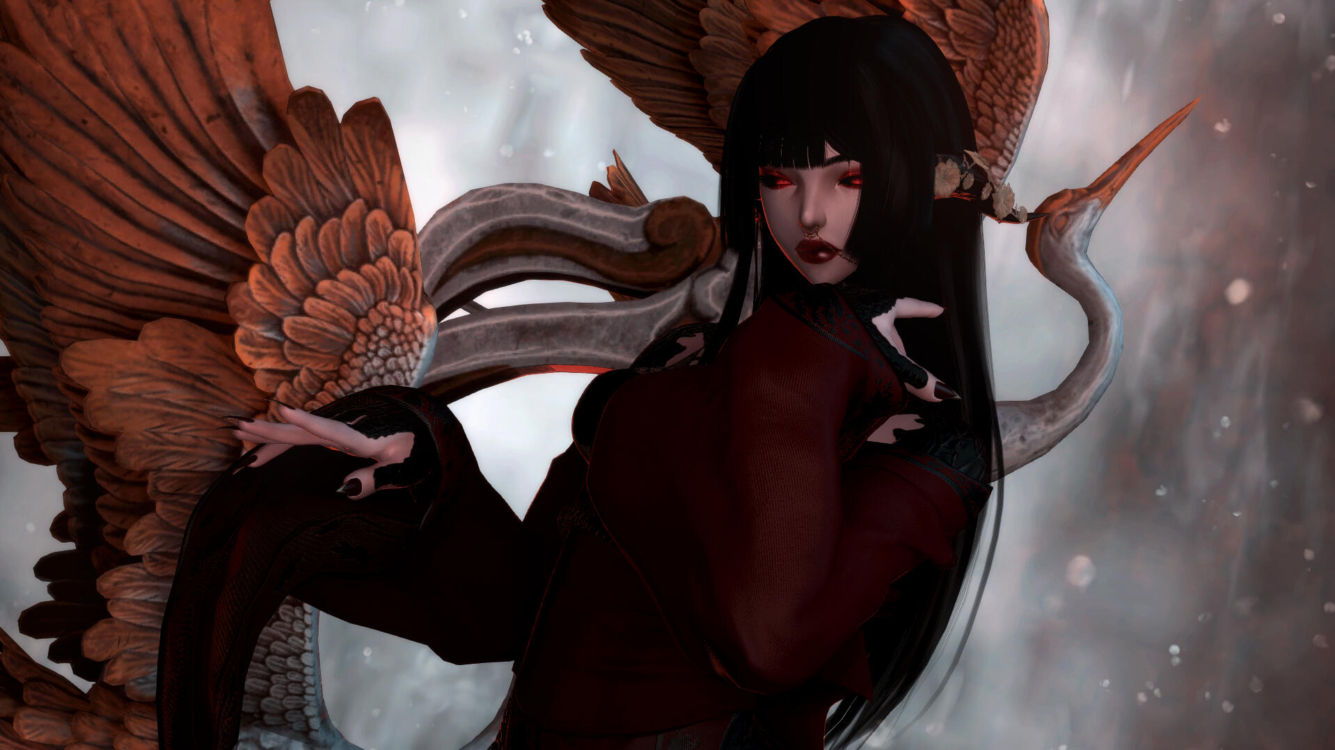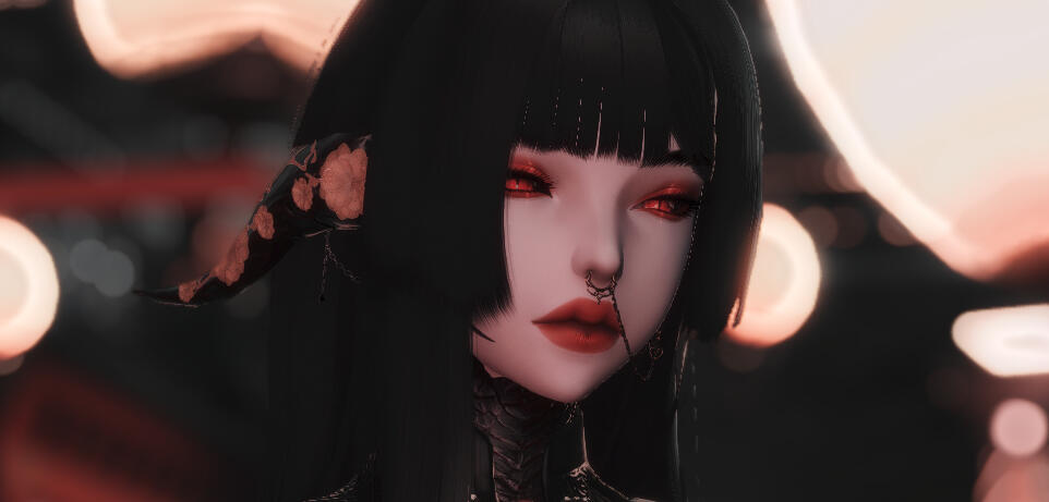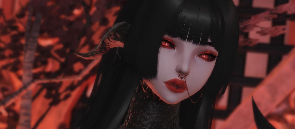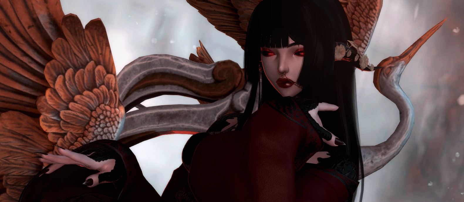 Outside of the Osen, the Xaela is rarely seen without a face covering – or rather, rarely seen at all.However, if you're lucky enough to catch her inside, her hair is sometimes unpinned – the sleek black tresses neatly brushed down to her lower back, paired with a blunt fringe always cut just above her brows. Dark scales reflect with a slight crimson hue, stark against her porcelain complexion. Veiled by heavy lashes, her piercing eyes are ever observing and peeking where they perhaps shan't.She is far from petite. Her legs accentuated by the pair of tall clogs in her possession, cloaked by the length of her kimono always a little too loose around the shoulders. Scaled talons always seen in pristine condition. Beneath the looseness of her clothes her physique is trim and well looked after, save for the scars and blemishes of her trade.Alluring and unruly in her own way, her demeanour is often hidden behind the curl of smoke escaping from a pipe often balanced between her fingers.personality