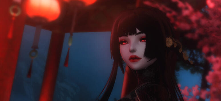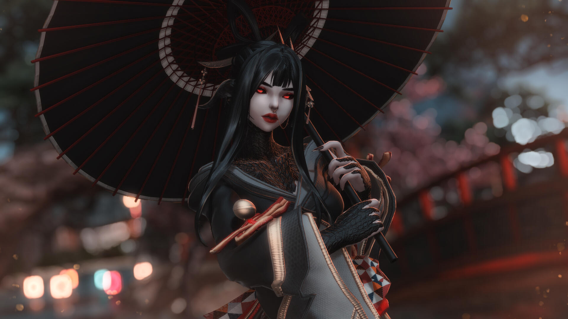 By the time she had returned to Kugane, the sky was smothered in a blanket of night with only a hint of starlight creeping through the smog of city lights. The hour was past midnight, the heart of the city still thrummed with the sound of life but it was soon drowned out by the eerie drawl of the outskirts – people littered few and far between; drowsy drunkards and shady individuals lingering in the back alleys.